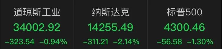 亚马逊最深跌超100美元或跌3.1%,收跌2.9%,创8月19日来最低,年内转跌。苹果跌超3%后收跌2.5%,失守140美元并跌破100日均线,创7月1日来最低。